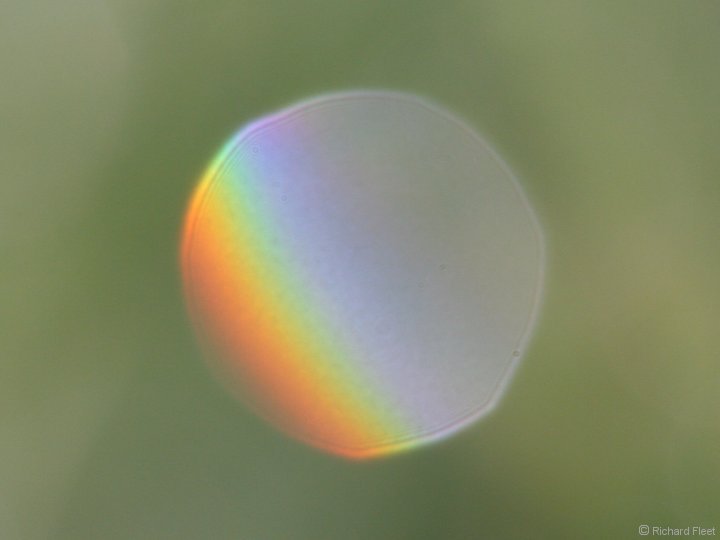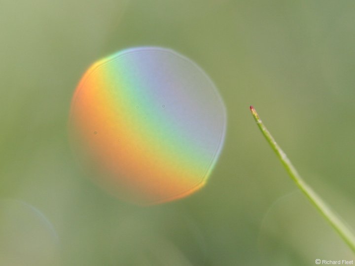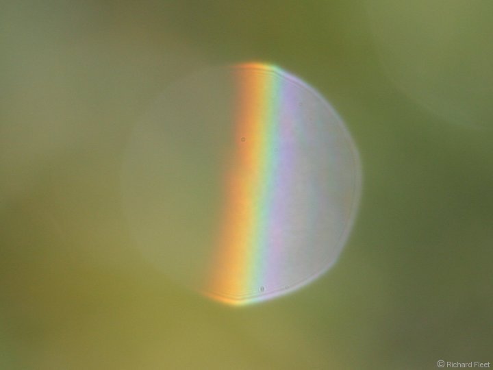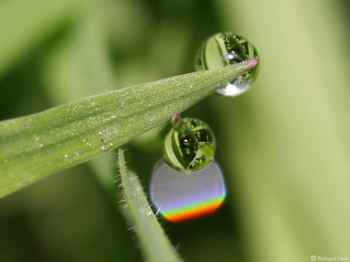 Careful positioning can show some of the optical effects of a single drop, which of course are the basis for the rainbow.