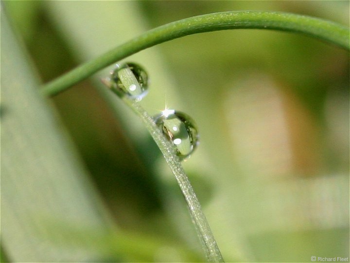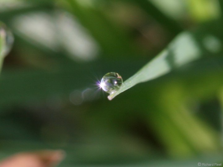 In focus view of light refracted through a drop.