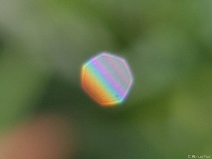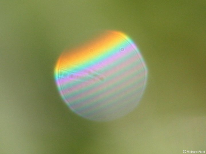 Where the light has travelled through an undistorted drop supernumeraries can sometimes be seen.
