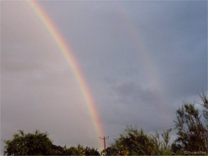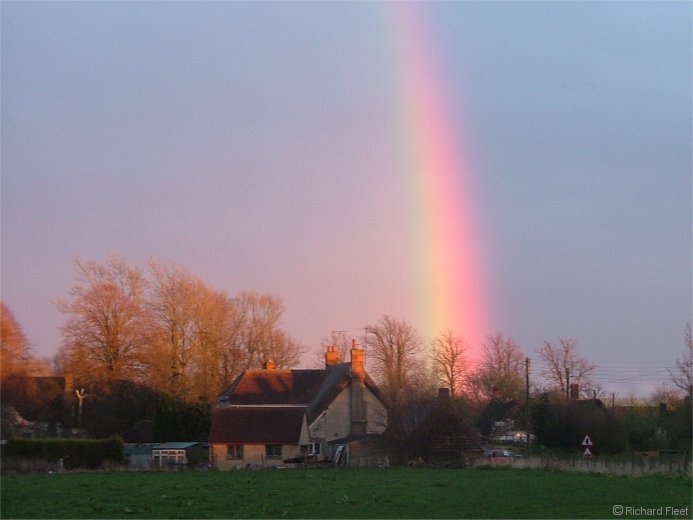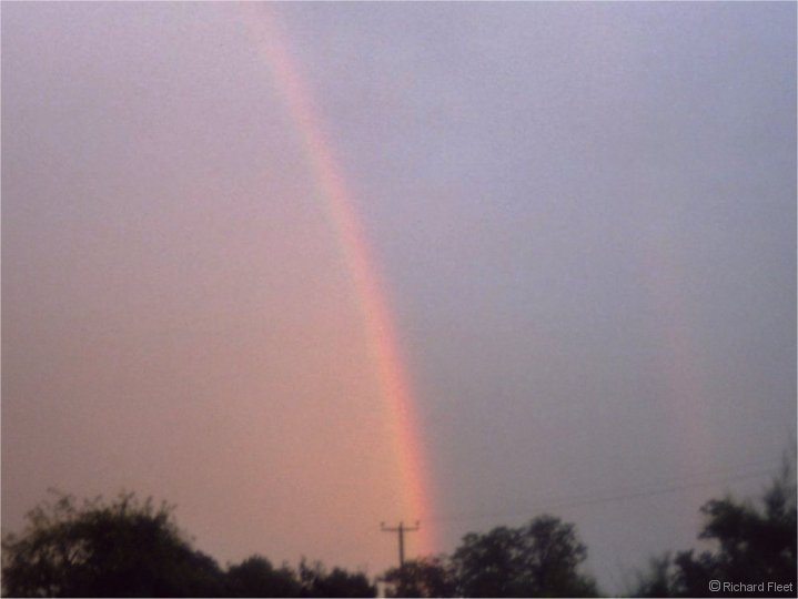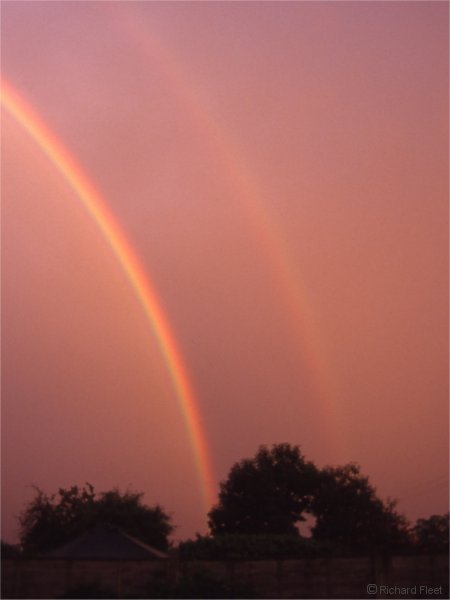 Just minutes before sunset an evening shower catches the last of the golden rays. Right: The whole sky was tinted with sunset colours making this sunset bow even redder than usual.