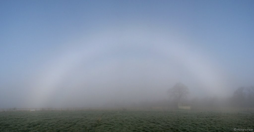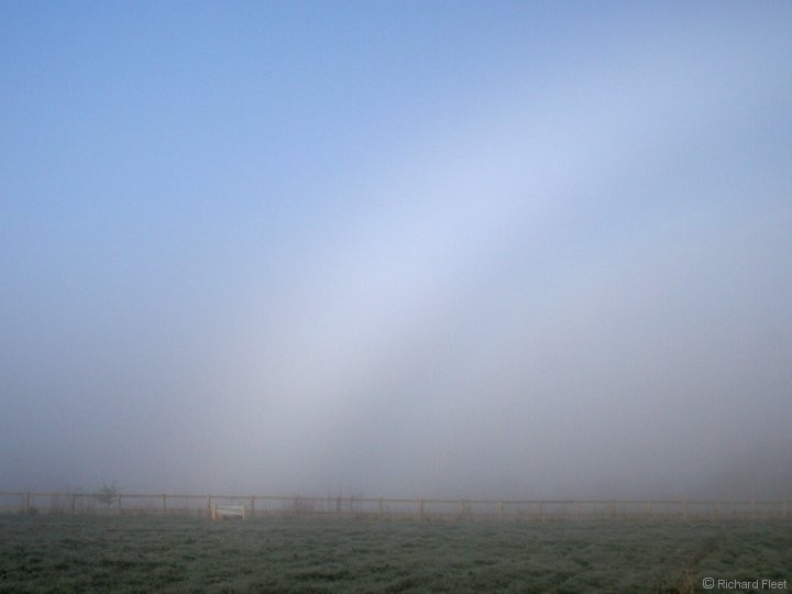 The fog lingered long enough after sunrise, and was thin enough for the sun to shine through, to create this prominent fogbow.