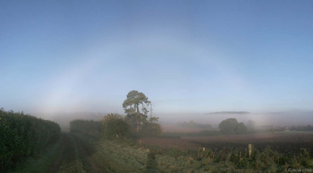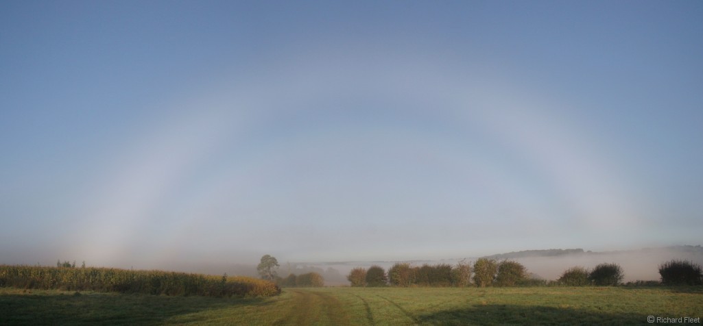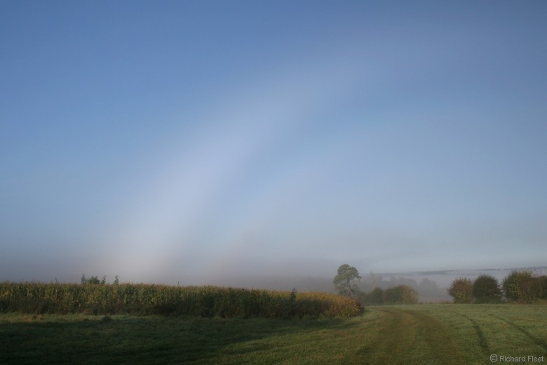This view with the polariser shows some colour in the supernumerary. Although the supernumerary was clearly visible without the polariser the colour wasn't obvious to the eye. |