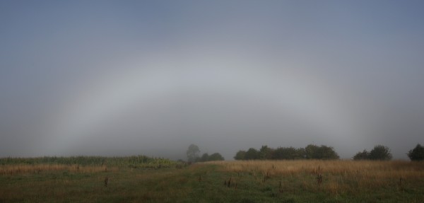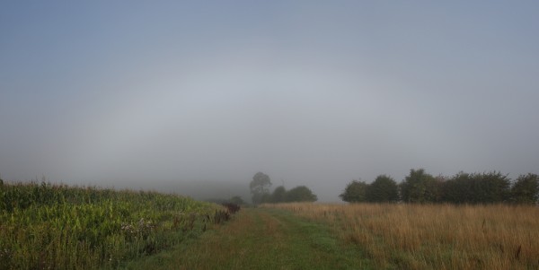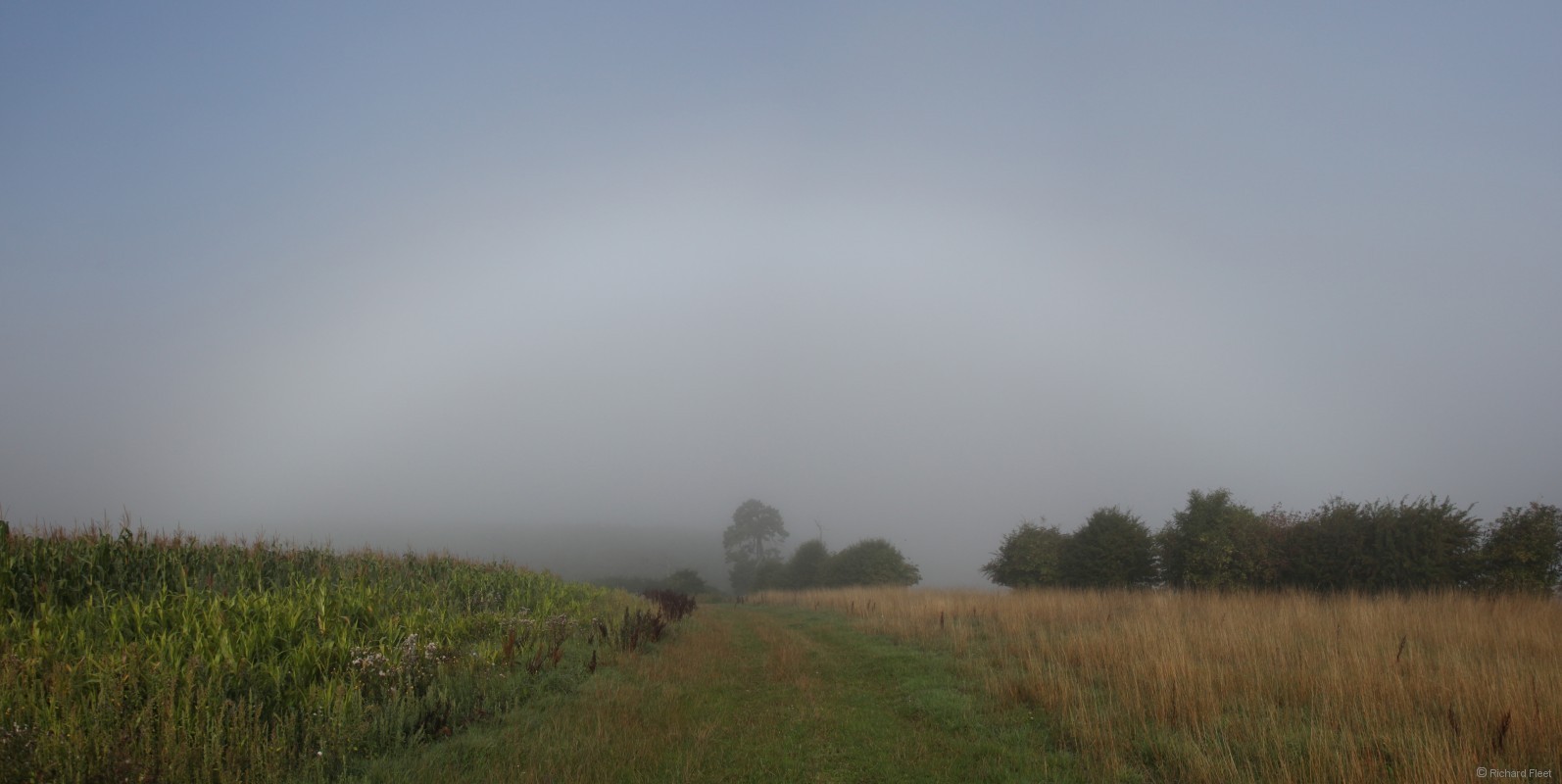 On a rather damp summer morning I stopped on a low ridge which is often a good place for seeing fogbows.