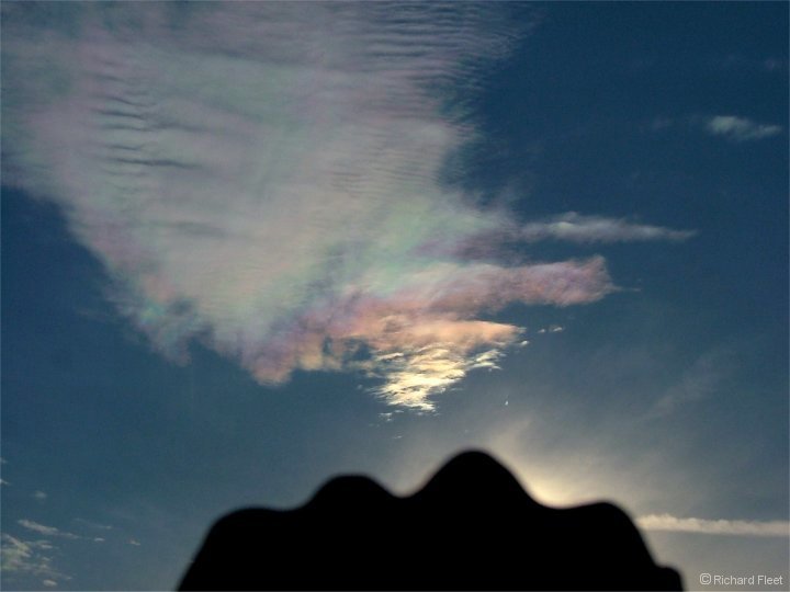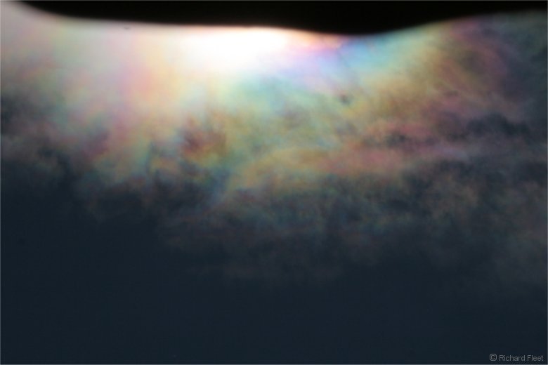 The outer fragment of corona at the lower edge of the cloud gives way to general iridescence.