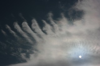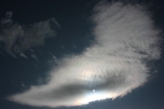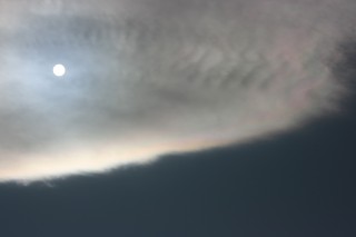 This thin cloud showed weak iridescence all around the edges, as well as the bluish aureole around the sun.
