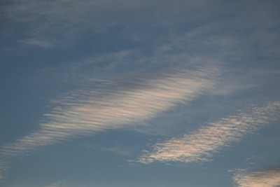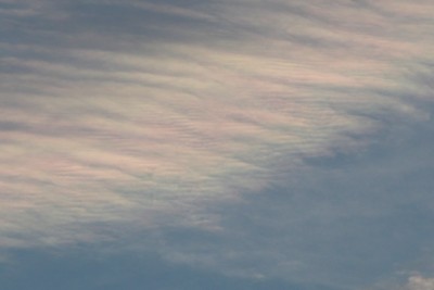 Closer examination shows the pastel greens and magenta typical of weak iridescence far from the sun.