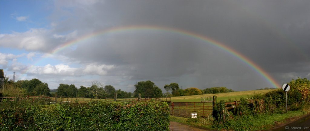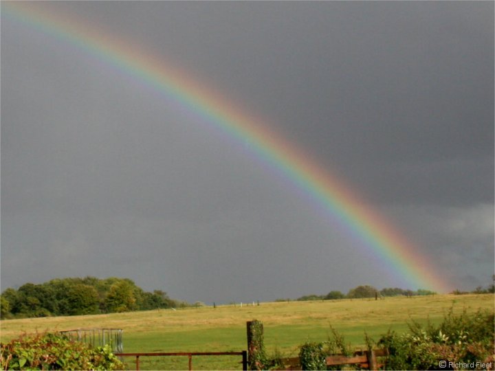 The edge of this mid-afternoon shower produced a strong rainbow. |