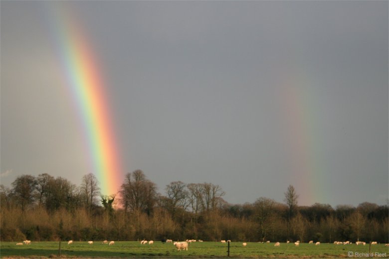 As the rain moved off the lower right side remained in sunlight to give a very bright primary and a distinct secondary arc.