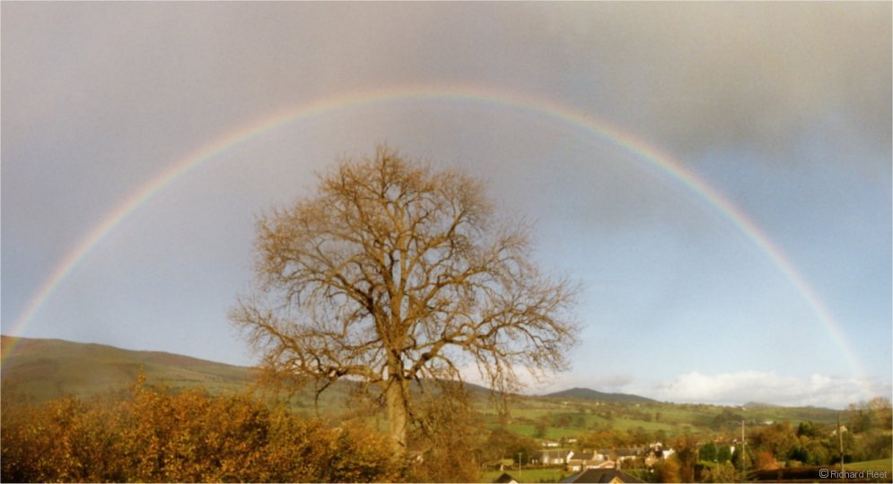 The low autumn sun gave a large bow in this Welsh shower.