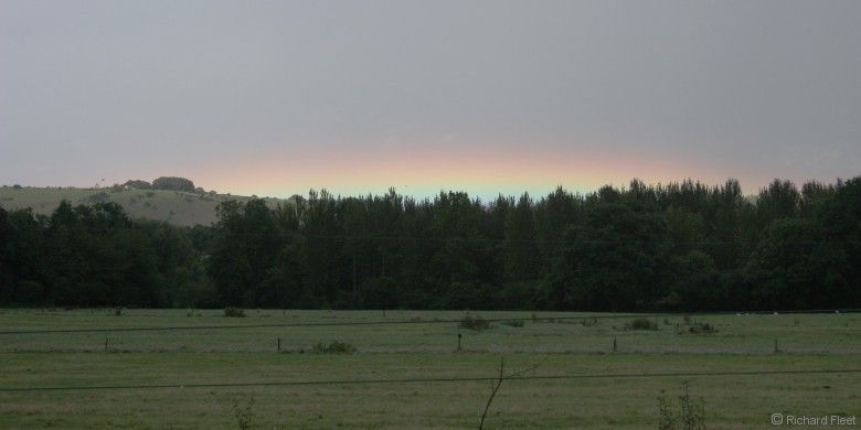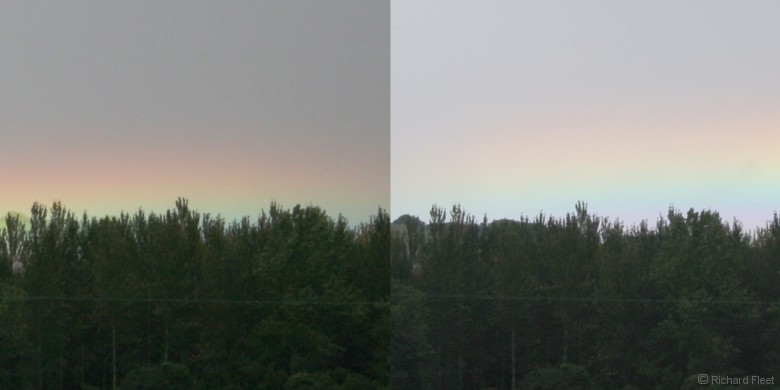 Although the lighting is different these sections from the two images show that the later bow is higher, with the indigo part of the bow now visible above the trees.