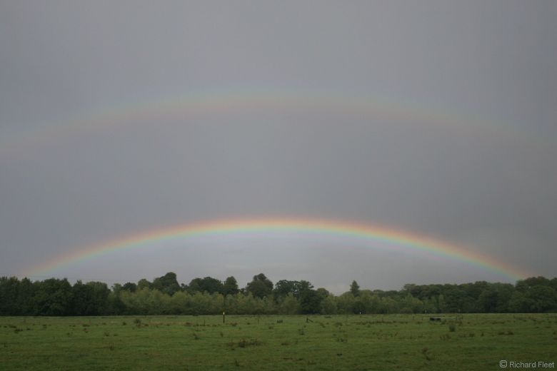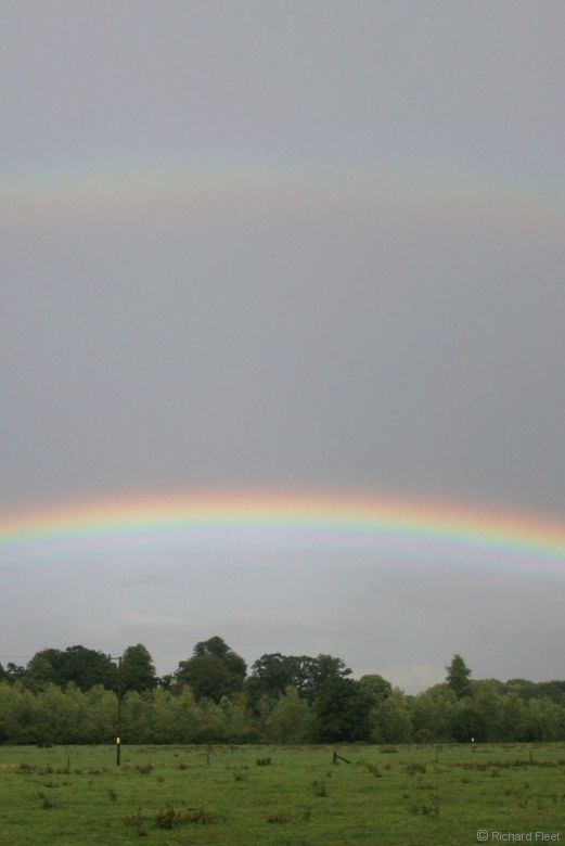 The sun was 34 degrees above the horizon which meant the primary was only 8 degrees above the horizon, less than its separation from the secondary bow. |