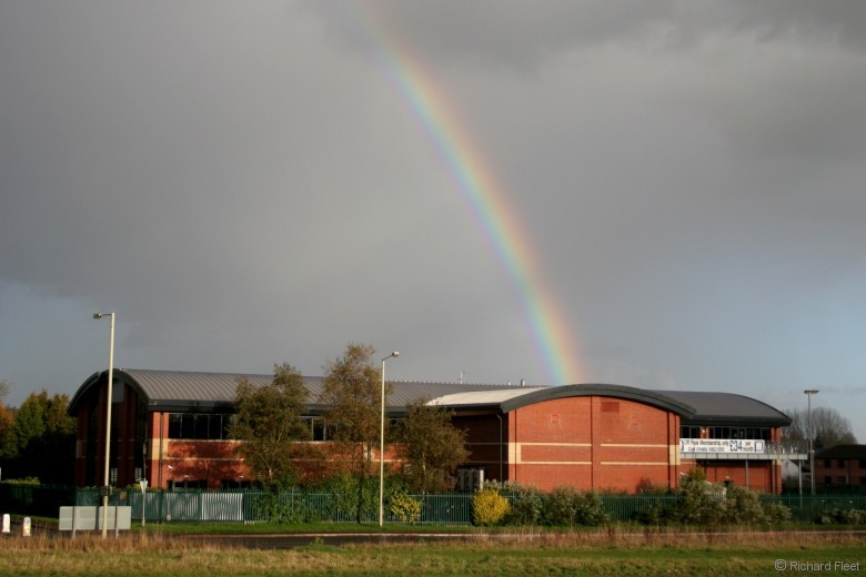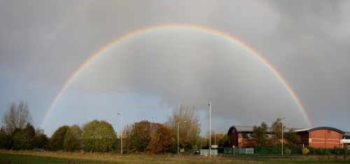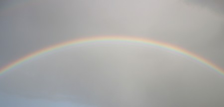 The sun started to shine through this light shower so I went out in the light rain to get this full bright primary bow. |