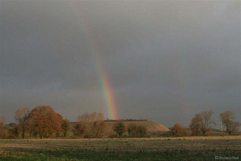 A break in the cloud lit up some rain in the distance to give a short-lived rainbow. 7th November 2009