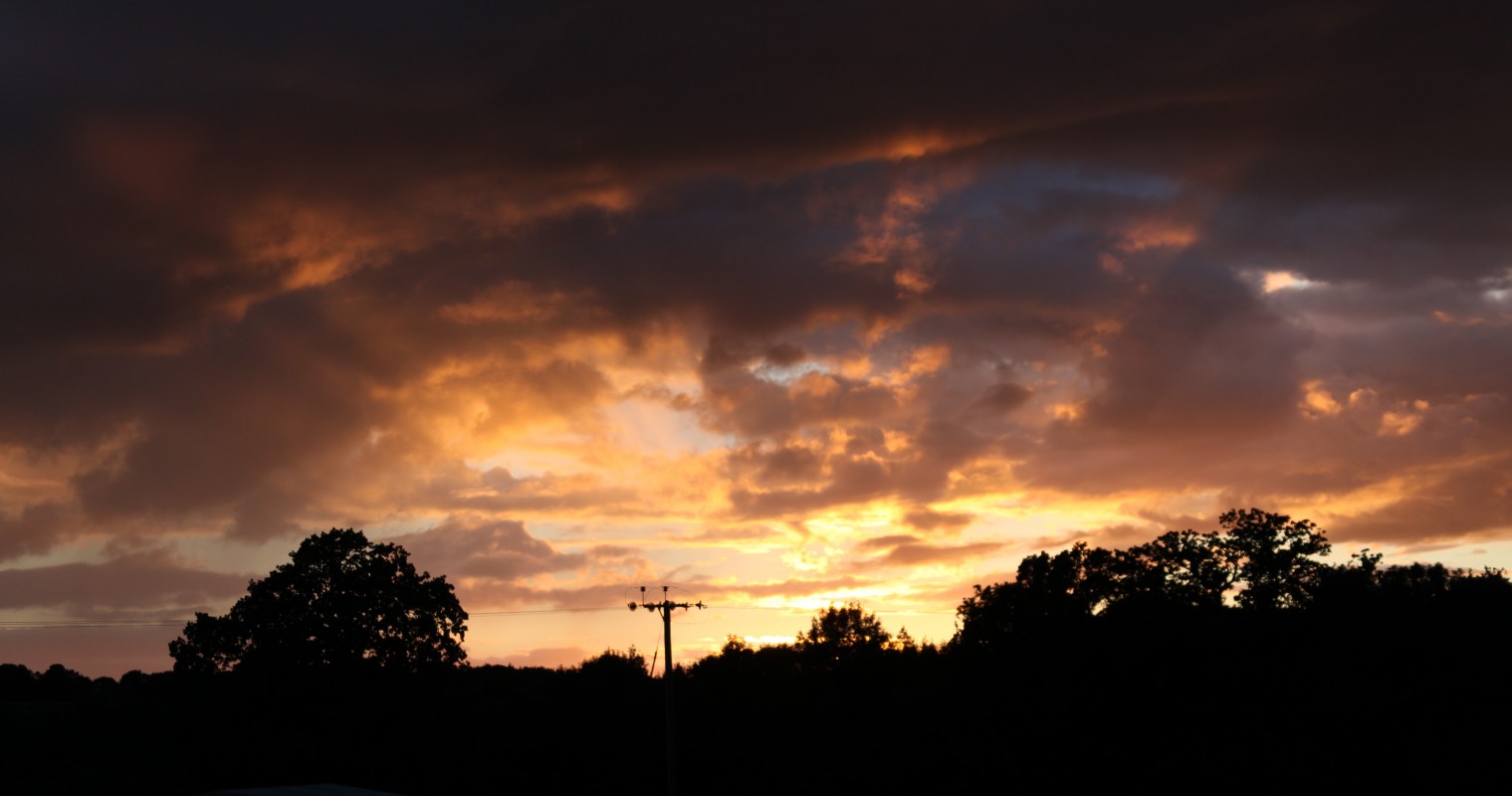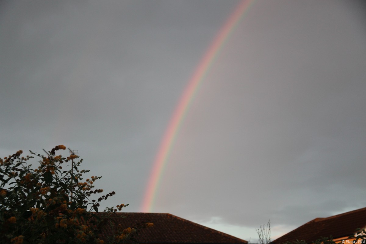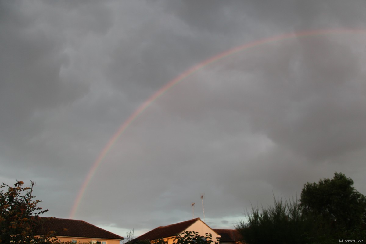 The sun was barely a degree or two above the horizon giving a reddened bow. |