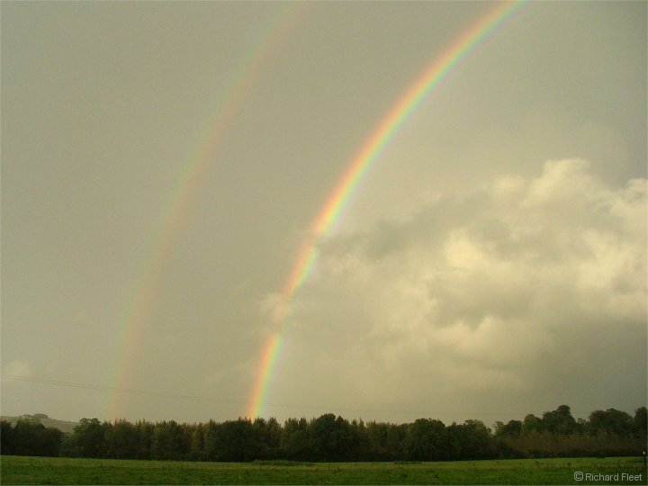 Apart from the strong primary and secondary bows this dramatic rainbow showed most of the rainbow features.