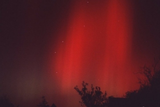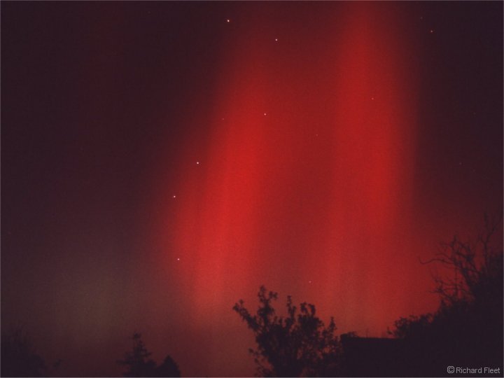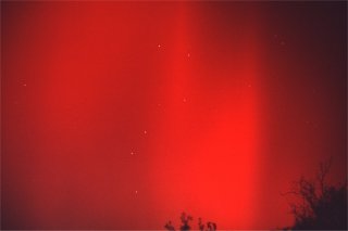 Here the multiple red rays are joined by a much fainter greenish patch. Red was the dominant colour throughout this display, fortunately slide film records it well.
