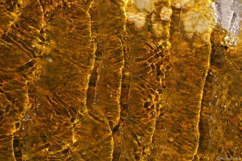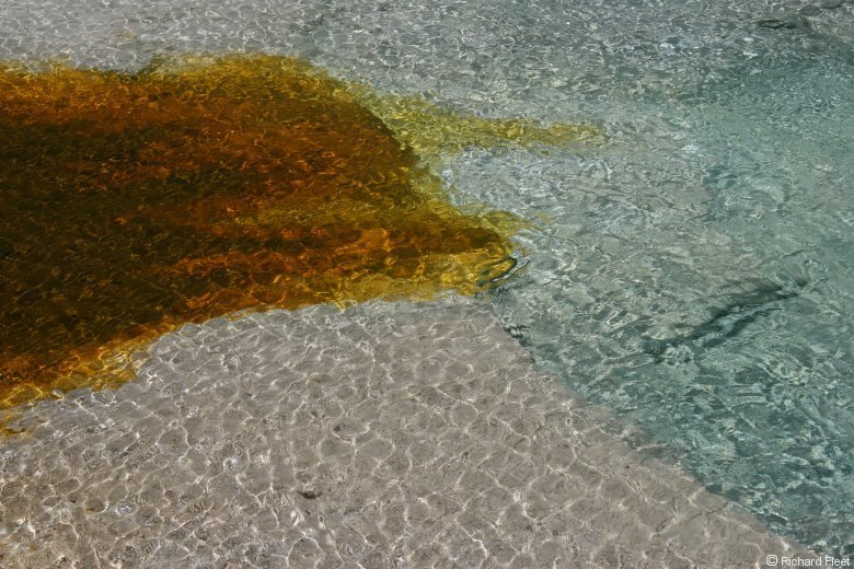 Shallow clear water and just the right wind conditions provided these strong patterns at the edge of a large hot pool. The patterns disappear in the shallower water near the edge.