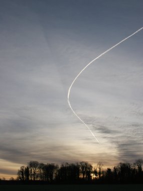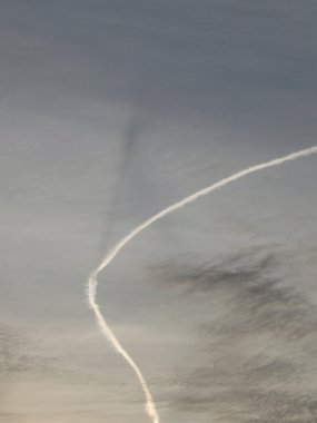 A few minutes later and the contrail has drifted but again it is only the small section aligned with the sun that shows a clear shadow.