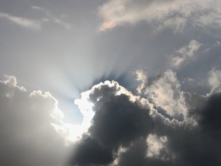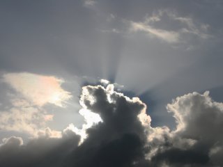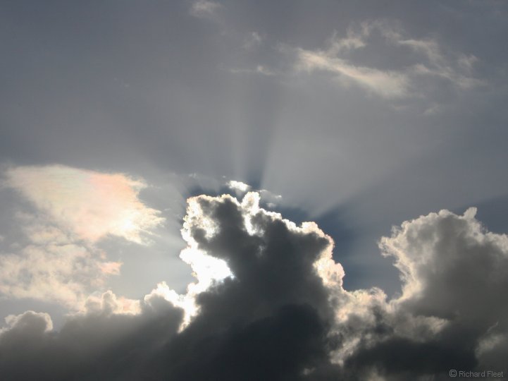 A passing cloud produced some interesting shadows, plus a flash of iridescent colour above the sun and some smaller patches along the cloud edges.