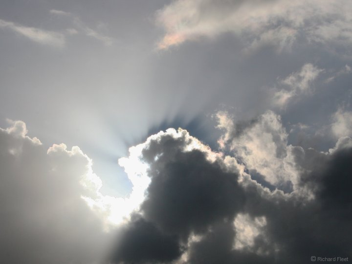 The huge range in brightness is difficult to record accurately but some iridescence shows up in the cloud to the left of the sun.