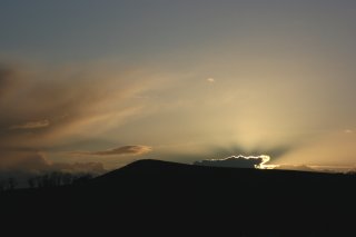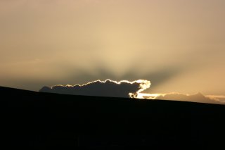 A few minutes before sunset this cloud casts fingers of shadow on a hazy lower layer of air.