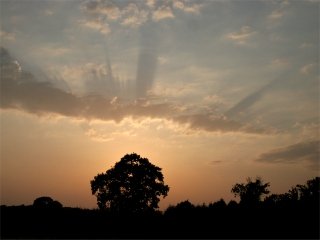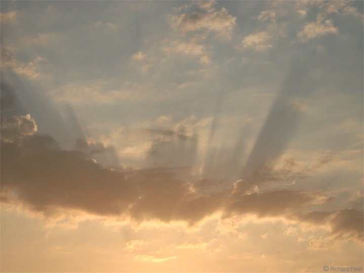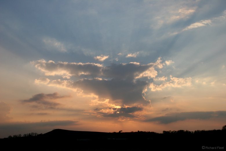 Short shadows seem to radiate from a line of cloud in the late afternoon sun.