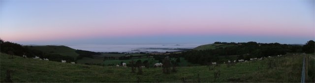 This panorama covers about 120 degrees and shows very well what the earth's shadow looks like on a clear morning.