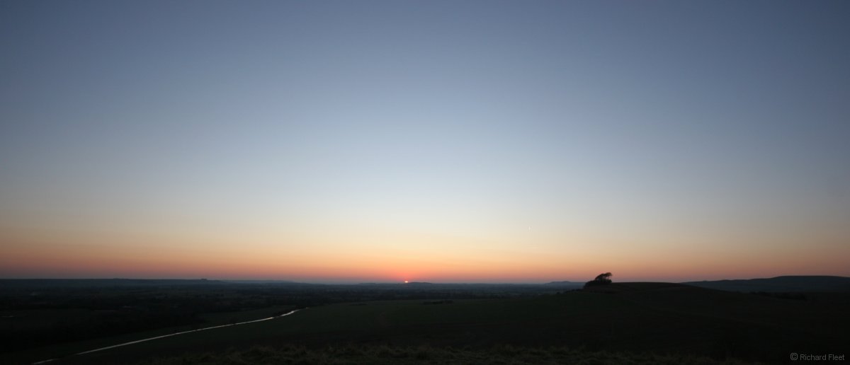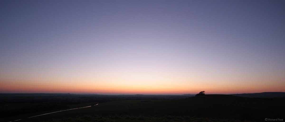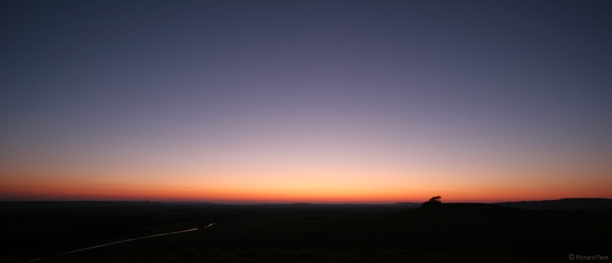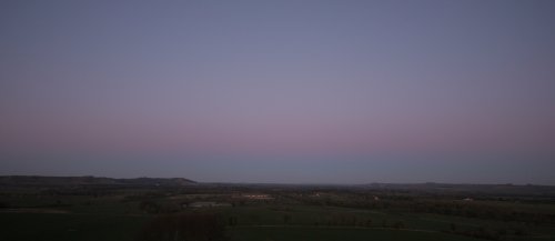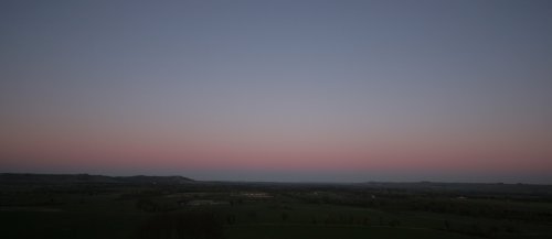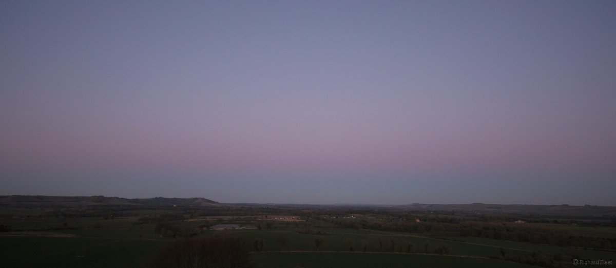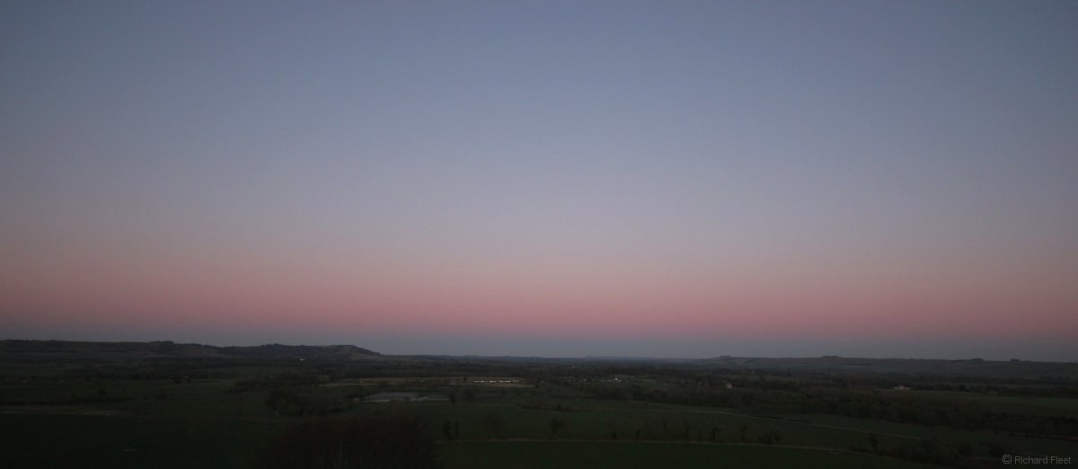 Looking east 5 minutes later the earth shadow is clearly visible, with the pink Belt of Venus above it.