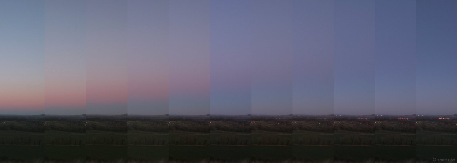 Looking west again 25 minutes after sunset and the twilight colours are approaching their strongest. |