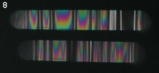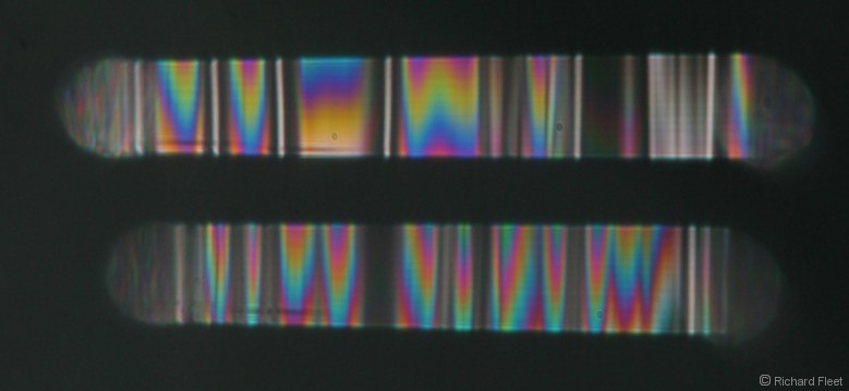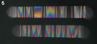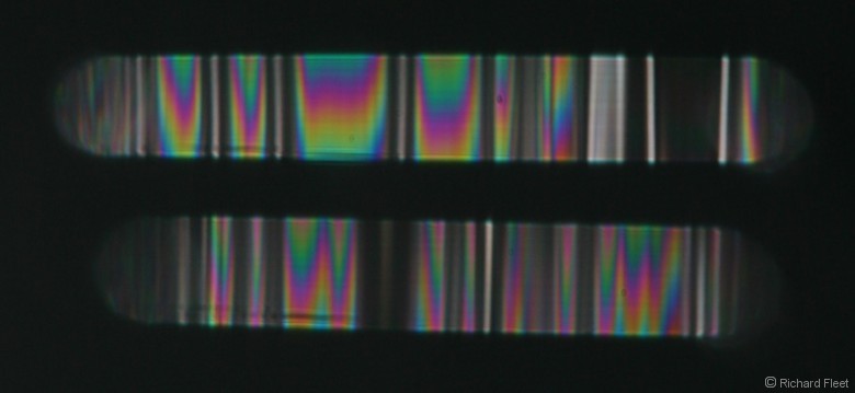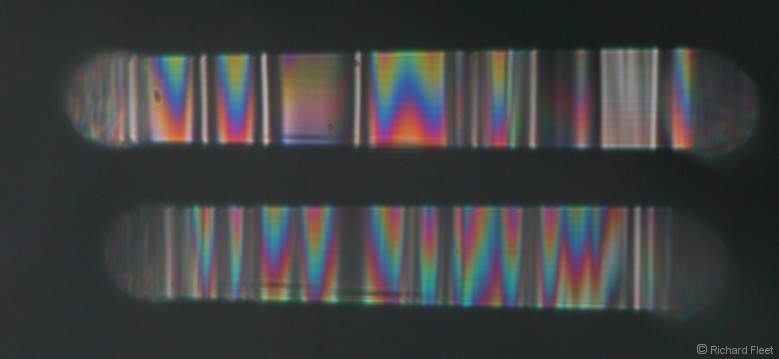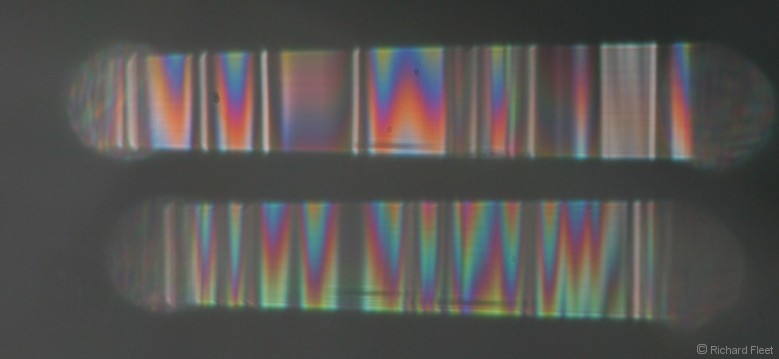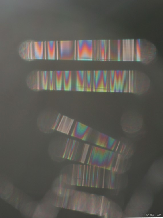 Each image is looking a few degrees further away from the sun and shows how the colour bands change with viewing angle.