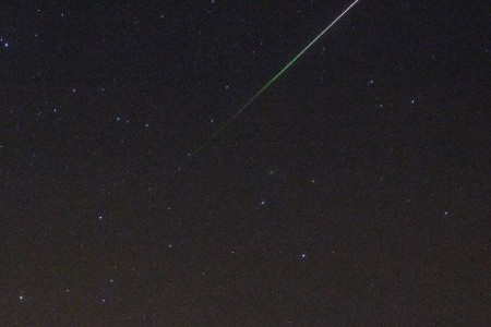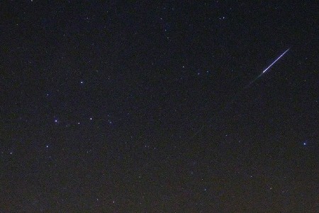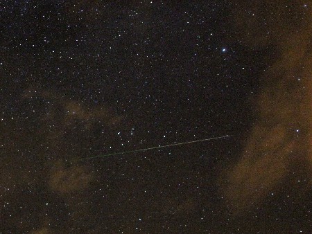 There were some gaps in the cloud but they didn't last long. This Peseid racing through Delphinus was the best complete meteor of the evening. |