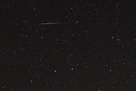 The Plough is below the meteor and most of Leo is visible to the top right.