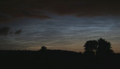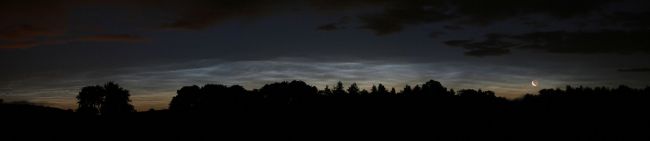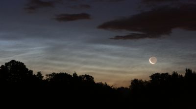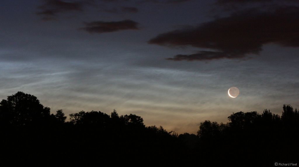The earthshine on the waning crescent moon made for an impressive sight as it shone through the thin noctilucent cloud.