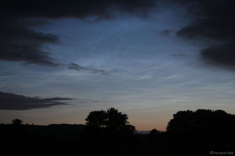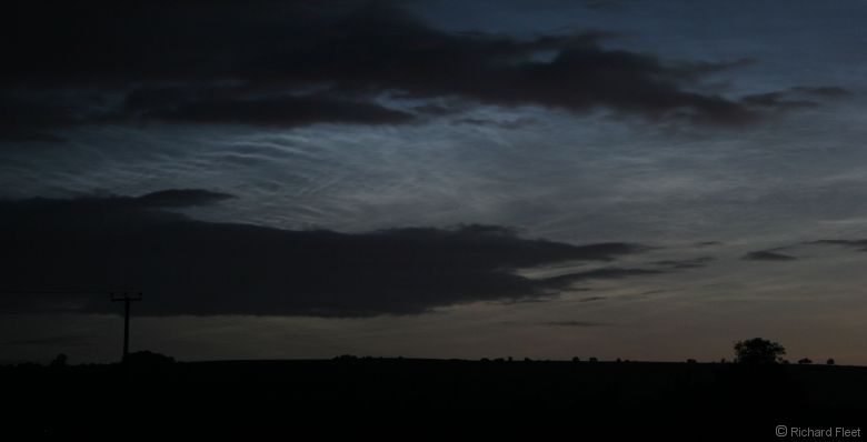 The noctilucent cloud was still quite strong even when the sun had got up to 9.2 degrees below the horizon. The low cloud obliterated what was left soon afterward. |