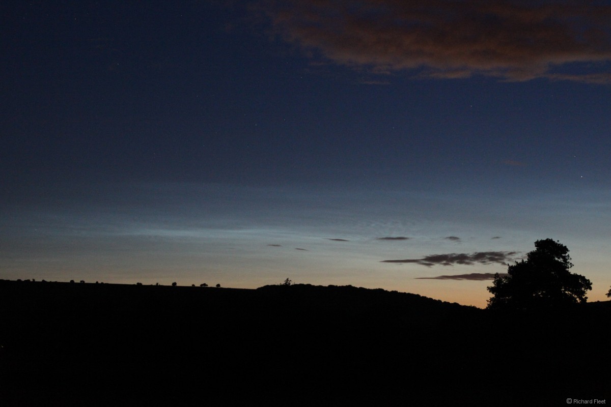 20 minutes later and the lower cloud has moved off, but the twilight is starting to drown out the faint noctilucent cloud.