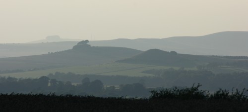 A calm day and the accumulated haze with its much larger particles scatters more red, dulling the view. |