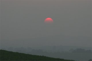 The next morning the air was slightly clearer, but the temperature profile was different so the sun was distorted in a different way.