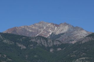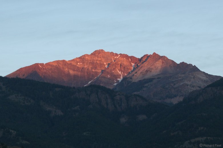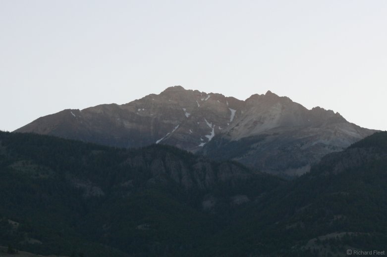 Electric Peak in the late afternoon, the light coloured rock is being lit by scattered light.