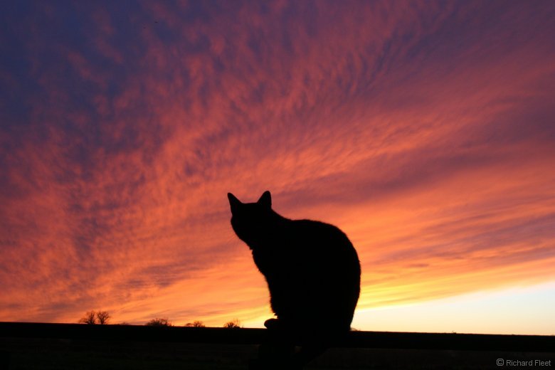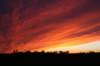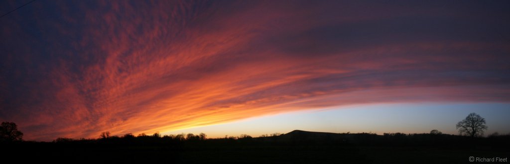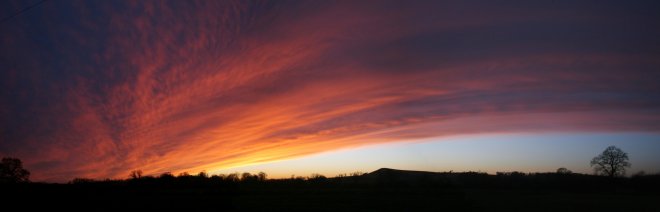 A bright end to a dull day as the cloud cleared from the west at sunset. The long path through clear air reddened the remaining sunlight to give this fiery display. (Top is a composite of 3 images)