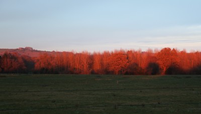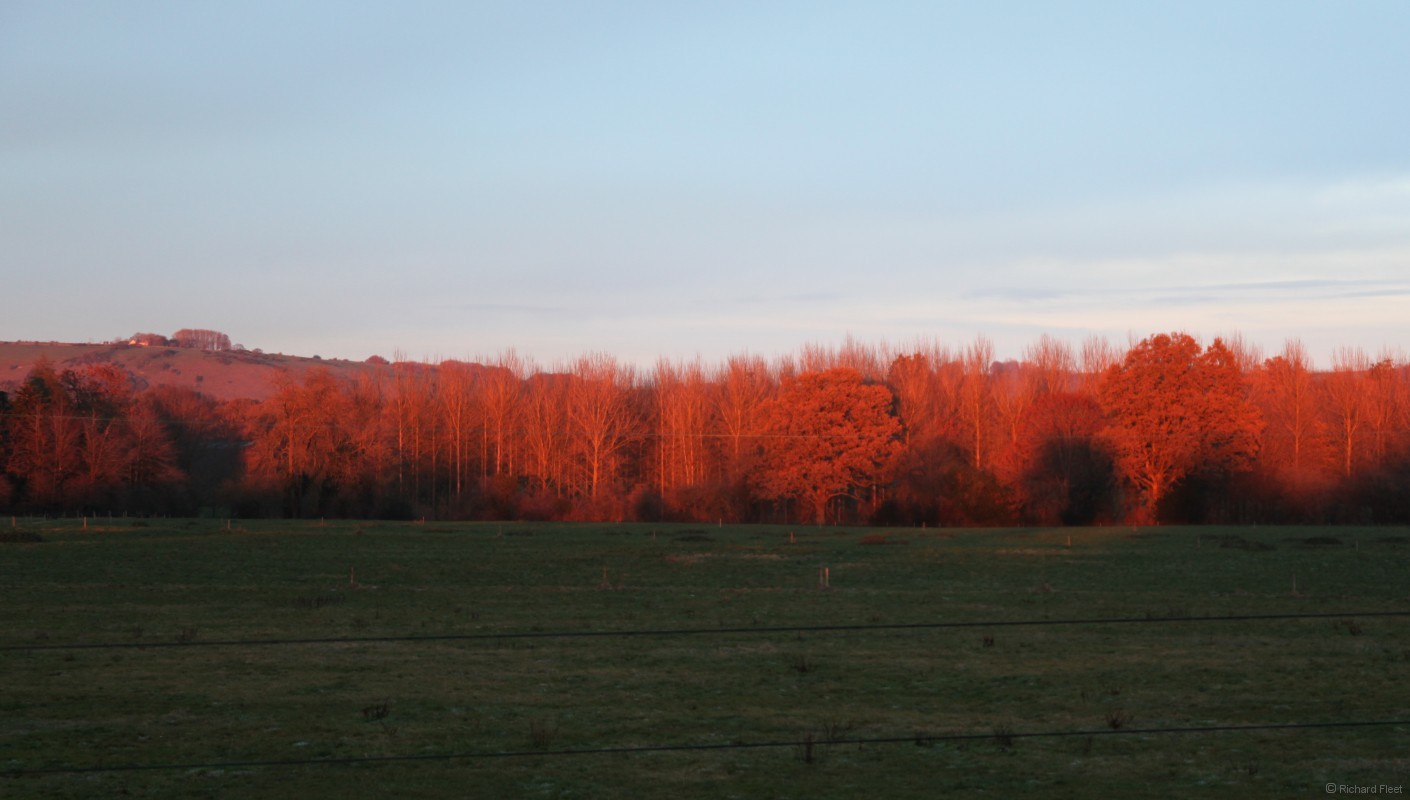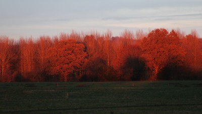 The low sun shining on these trees was unusually red.