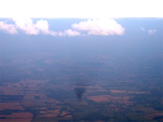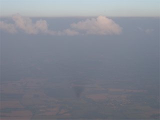 Here the shadow of a hot air balloon is faintly visible in hazy air.