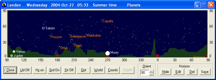 A rough outline of the horizon can be drawn which is useful for working out when objects will be hidden by nearby houses or trees for example.