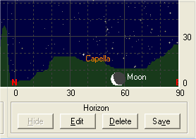 Provided you have some approximate measurements a simple horizon outline can be drawn and saved for the currently selected observing site.