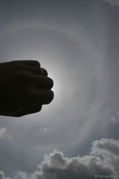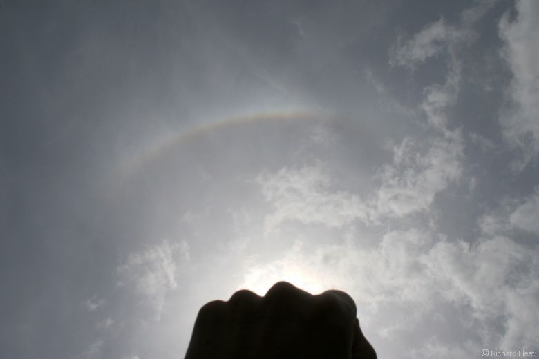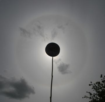 90 minutes later a completely different type of cirrus moved in, giving this smooth but almost colourless halo.