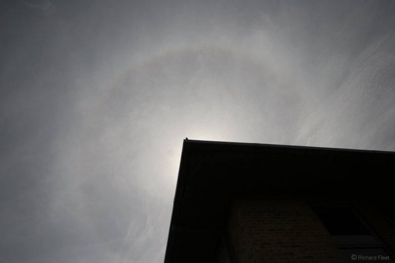 A fairly ordinary 22 degree halo near midday. Photographing the roof did attract some comment from interested passers by!