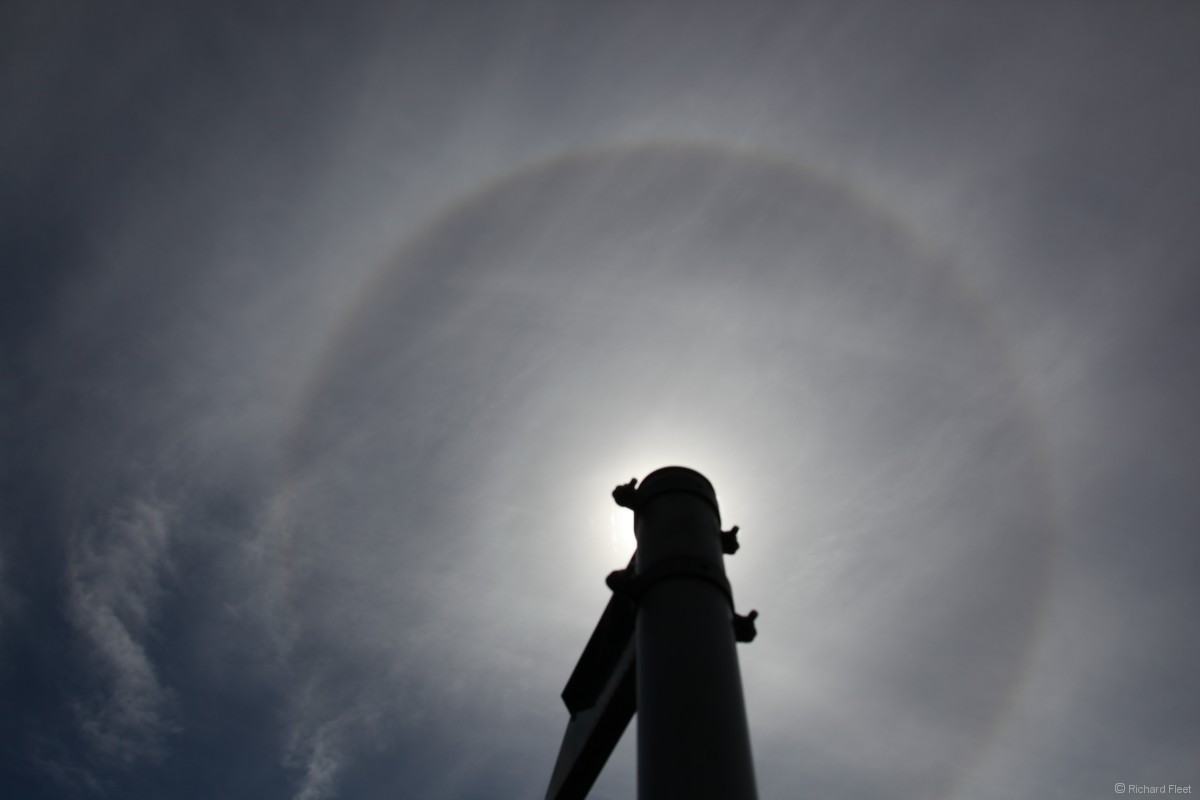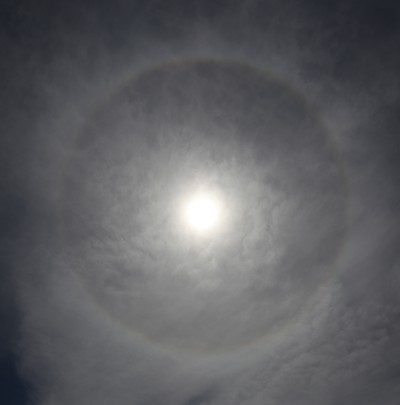 The halo was complete but a bit uneven in the more mottled cirrus that followed.