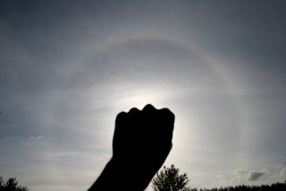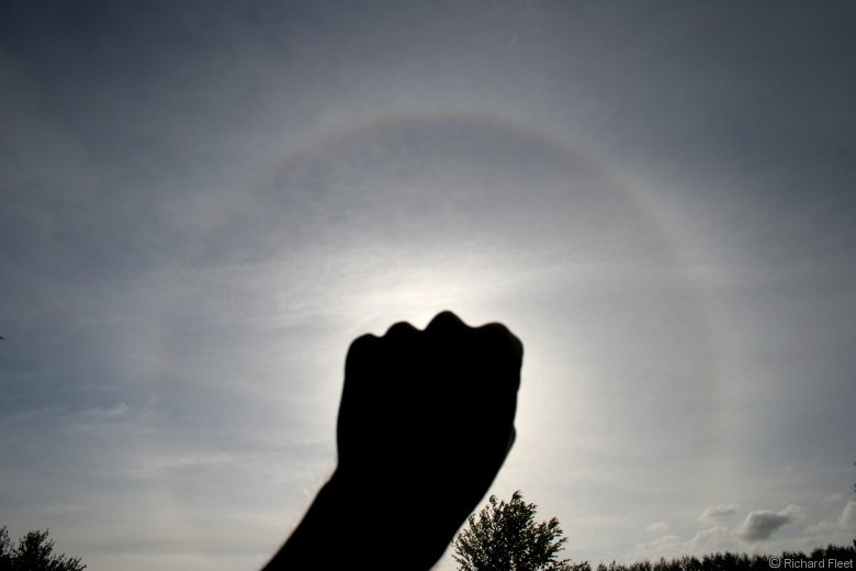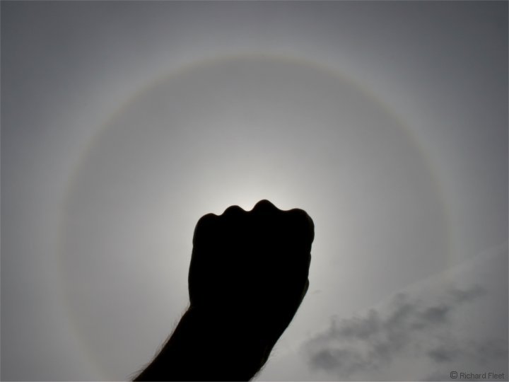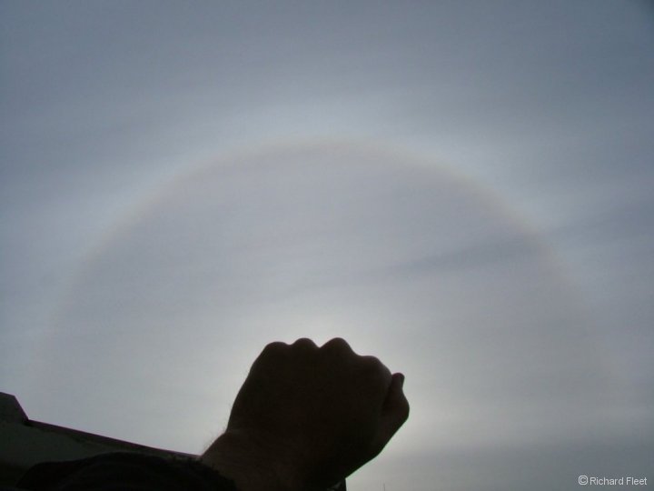 Even when the sun itself is blocked out the glare from the cirrus can be very strong, so eye protection is often needed.