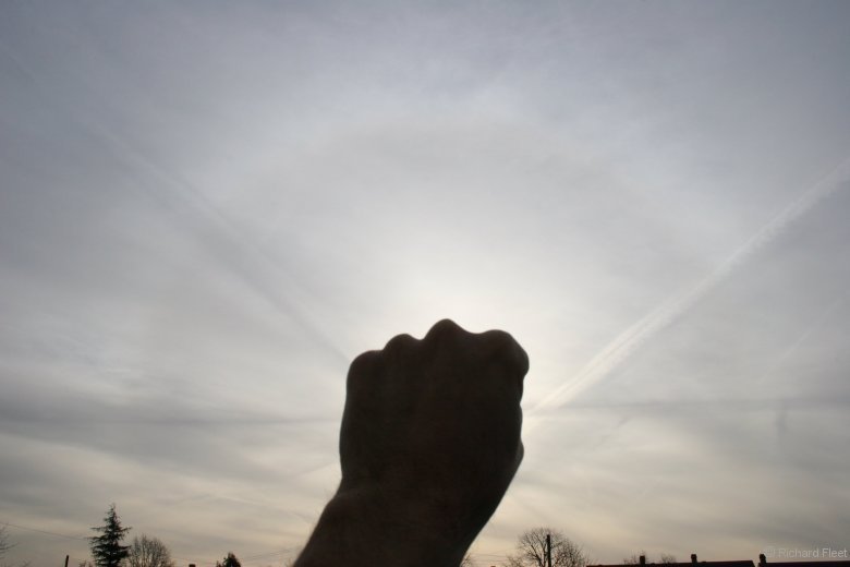 At one point a circumzenithal arc was visible together with the 22 degree halo. Although the 22 degree halo was better defined and showed more colour than earlier in the day it was no match for the pure colours of the circumzenithal arc.