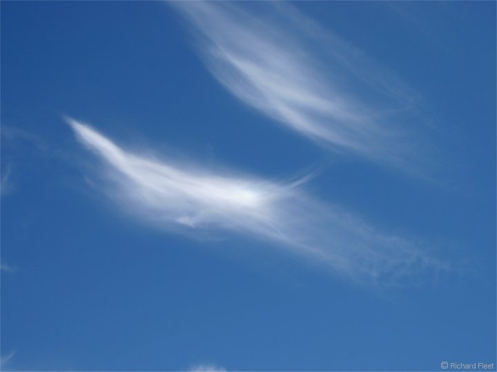 Click on the image for a brief 4 frame animation. The sequence is centred on the parhelion which disappears as the cloud moves away to the lower left. It shows how important the relative movement of the cloud is in distinguishing the parhelion.