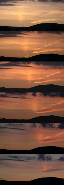 Over 25 minutes this sunpillar drifted slowly to the right, following the sun. The pillar faded out when the sun was almost 4 degrees below the horizon. |
